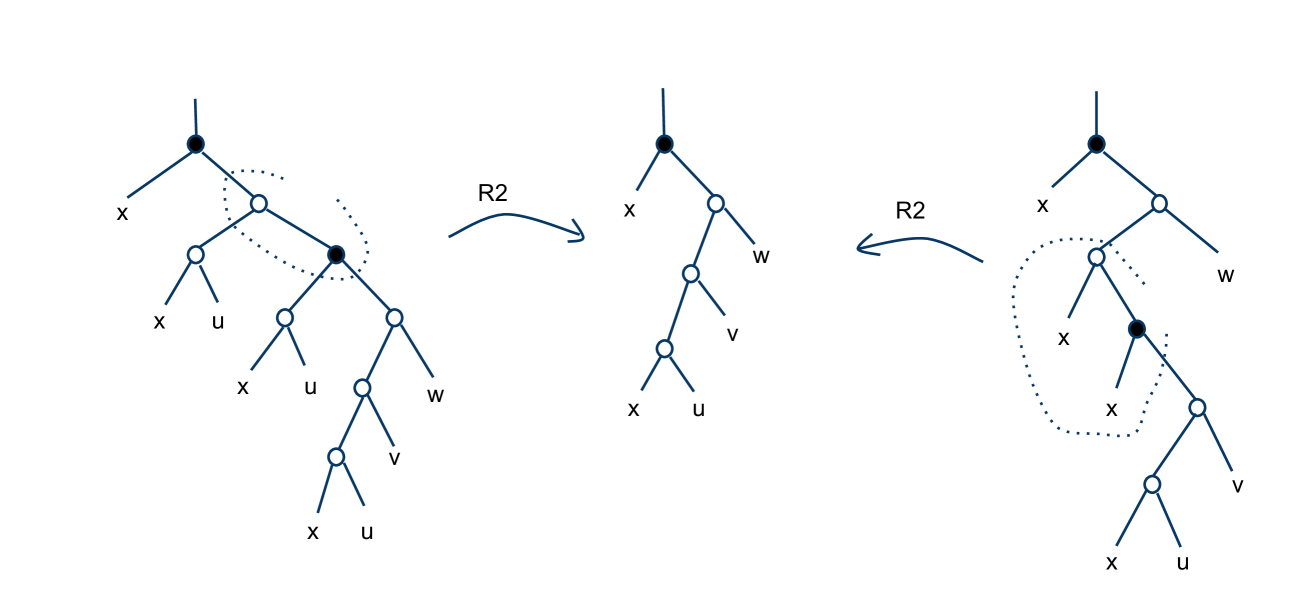 The second groups is equivalent with the re-wiring move (W1) and the relation .